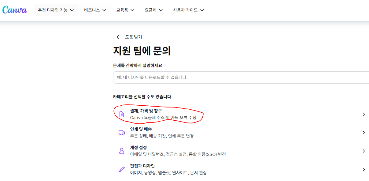 6. 지원 팀에 문의 - 결제, 가격 및 청구